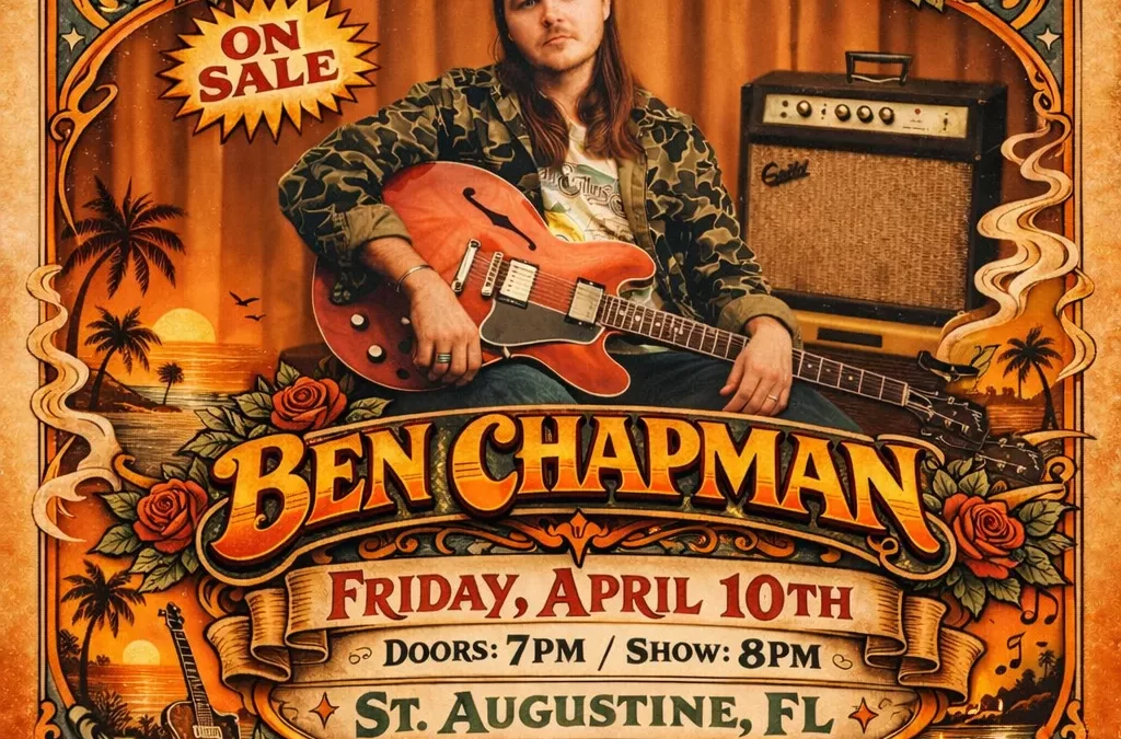 Don't miss Ben Chapman performing April 10, 2026 at Cafe Eleven in St. Augustine Beach! With special guest Ryan Nelson.